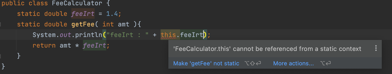 static double feeIrt = 1.4; // #1. static 변수 선언
