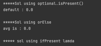 if( optional.isPresent() ) System.out.println("optional.getAsDouble() : " + optional.getAsDouble());