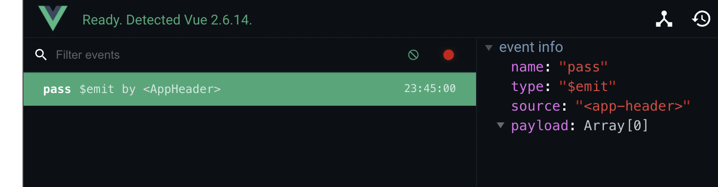 <app-header v-on:하위컴포넌트에서 발생한 이벤트 이름="상위 컴포넌트의 메소드 이름"> 을 활용해서 상위 객체에서 이벤트 발생시 실행할 함수를 정의해줄 수 있다.